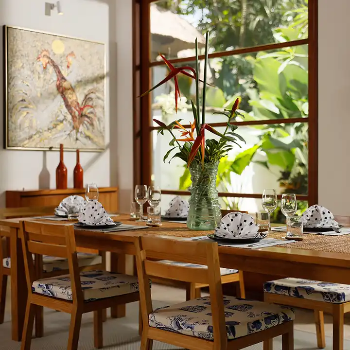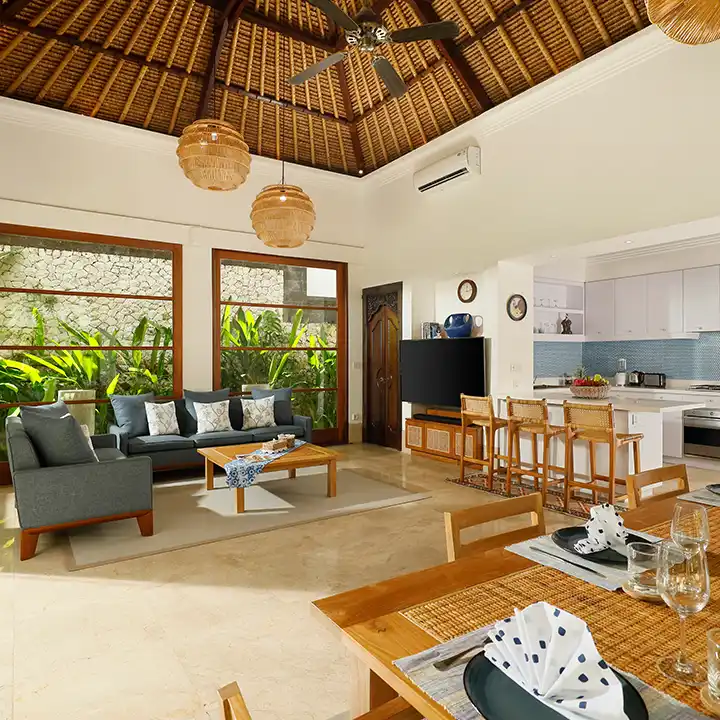 Wooden touches and floor-to-ceiling glass sliding doors seamlessly connect these spaces to the lush outdoors. Beyond aesthetics, Villa Edward is a retreat that embraces the best of both worlds. Whether you seek the tranquility of Balinese traditions or the comfort of American elegance, every corner tells a story.